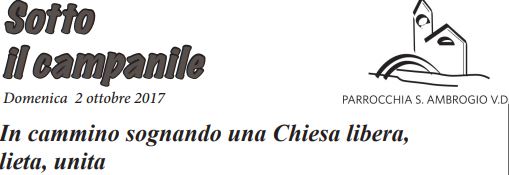 Sotto il Campanile 2 Ottobre Pubblicato giorno 30 settembre 2017 - NOTIZIARIO, Senza categoria .. .. .. scarica ⇒ Sotto il campanile 2_10_2017